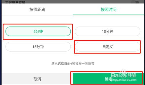 打开如下图界面,选择本身需要播报的时候距离也可以自界说时候,勾选后,点击下方简直定按钮保留返回。