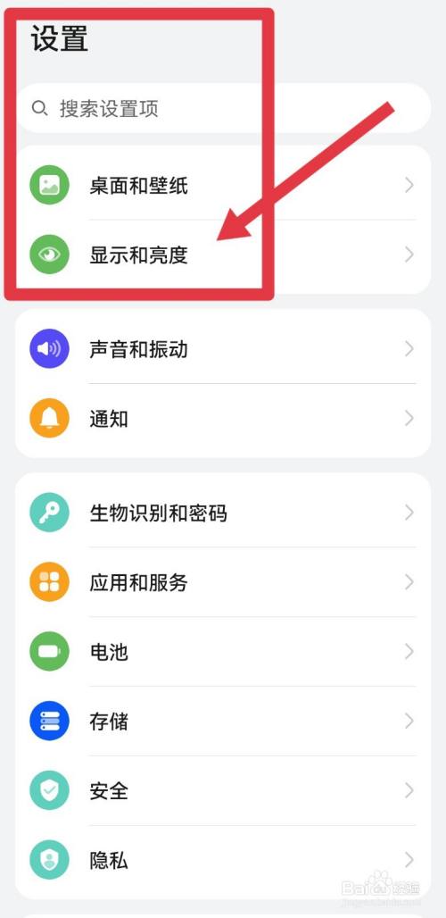 打开手机进入设置页面的显示与亮度。