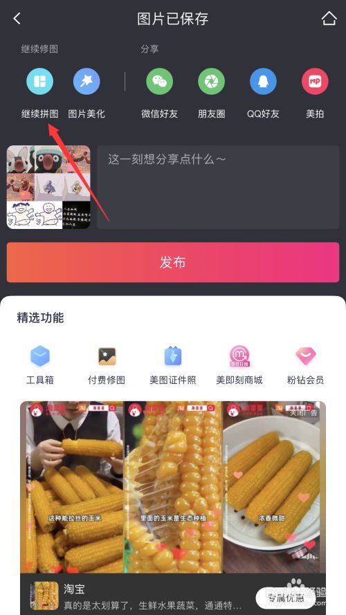 拼当作九宫格后,点击保留,可选择继续拼图。