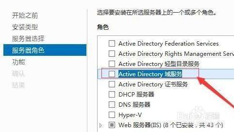 第5步在办事器脚色选择时,选择“active directory域办事”