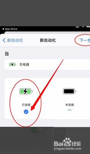 8、在新主动化充电器界面,点击已毗连,点击右上角的下一步即可。