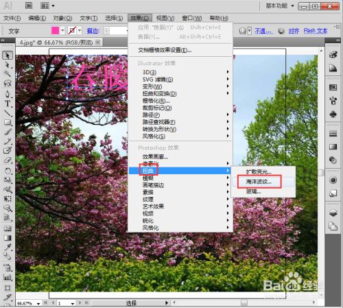 点击结果,在扭曲中选择海洋波纹;