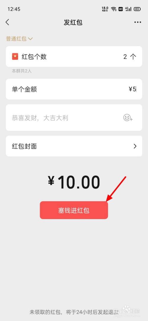 输入金额人数,点击塞钱进红包即可。