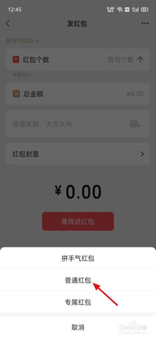 呈现选项,点击通俗红包。