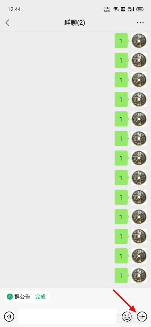 在群聊页面,点击加号。