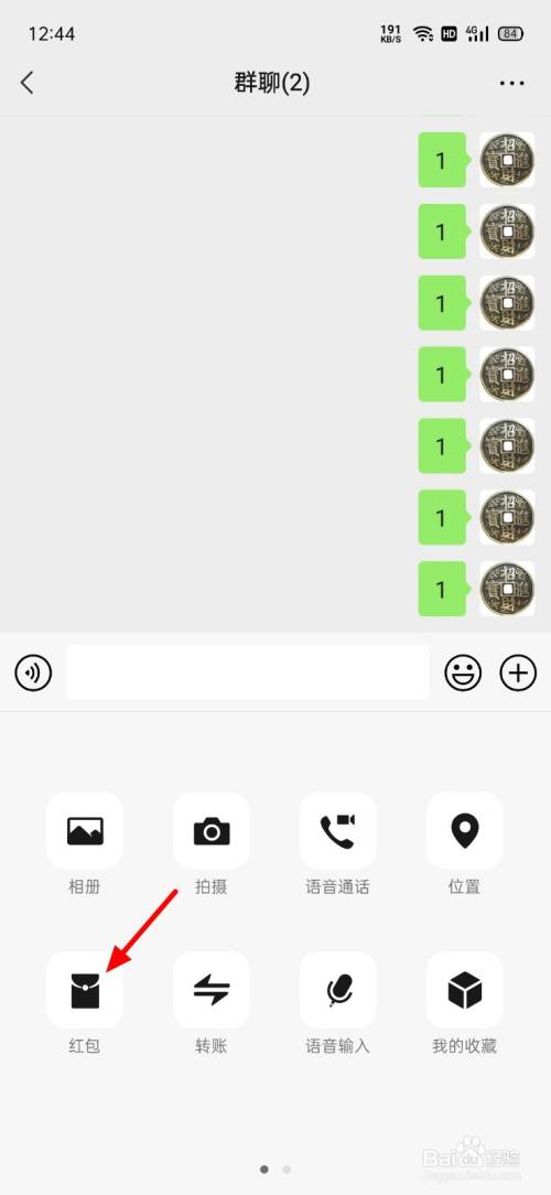 在更多选项中单击红包。