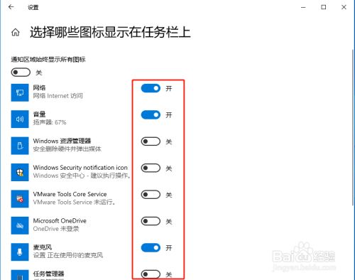 在打开的界面中,则可以选择想要显示在使命栏的图标。
