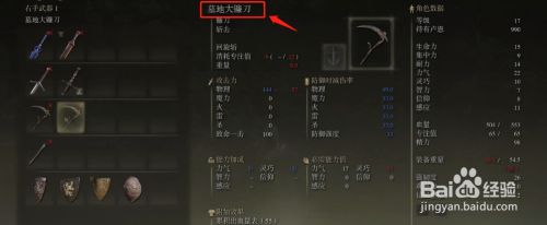 工具/原料联想拯救者微软win10艾尔登法环1.0方式/步骤1首先,运行艾尔登法环,打开地图选择傍湖断崖,点击传送。2其次,达到位置后,沿着道路一向往前走,进入坟场。3接着,在坟场进口处刷新出1个镰刀保卫,进犯并击败镰刀保卫。4然后,接着往里走,在断崖边击败两个镰刀保卫。5接着,覆灭完镰刀保卫后,看到地上的光点。6最后,点击地上的光点,即可获得坟场大镰刀。END