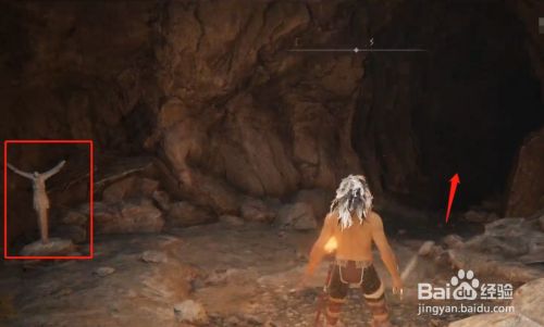 第二步,传送到位置后,进入雕像左侧的洞口。