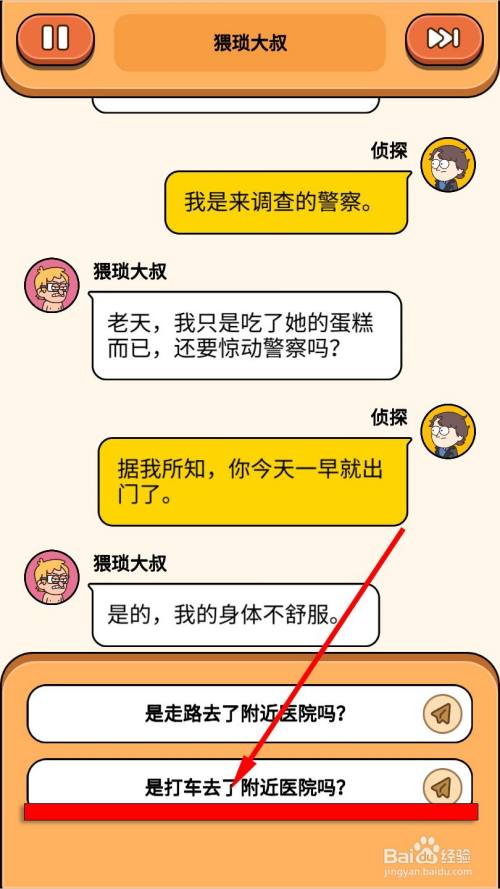 大叔说是的因为身体不舒畅,大侦察问【是打车去了四周的病院吗】
