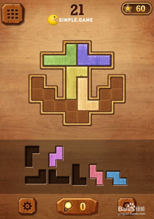 最后把褐色Z外形木块放在蓝色木块的左上侧挨着,如图,这样就通关了。