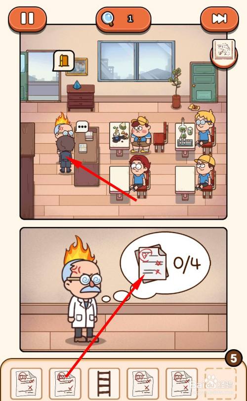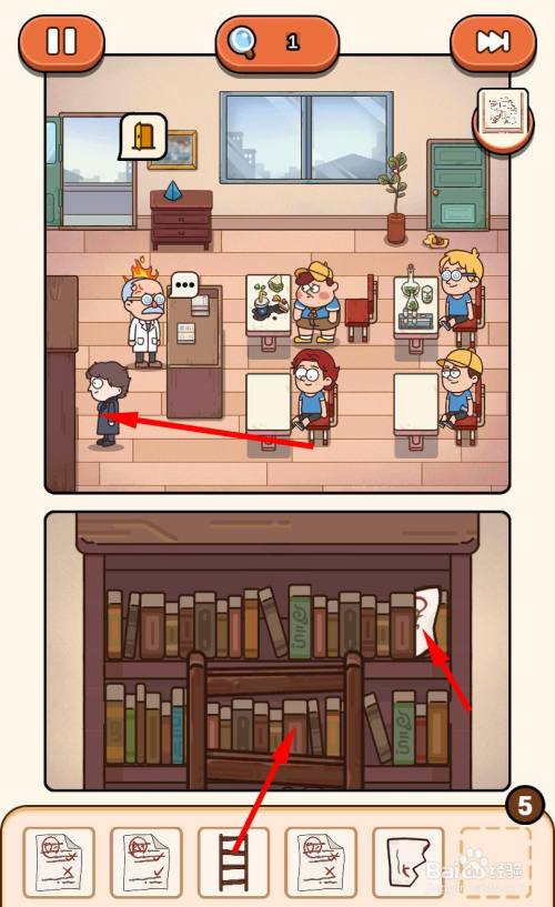 回到教室,在左边的书厨前利用梯子,放好梯子后标的目的下滑动,画面移动到梯子顶时会看到旁边的试卷碎片,点击拾取试卷碎片。获得2张试卷碎片后,试卷会主动拼好即可获得试卷4。