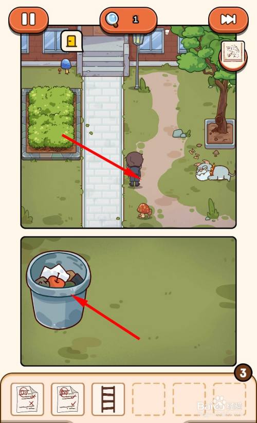 走到垃圾桶旁边,点击垃圾桶将垃圾桶打翻。