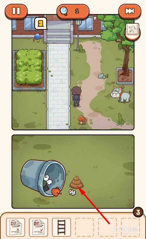 垃圾桶被打翻后,失落出一个便便,点击拾取便便。