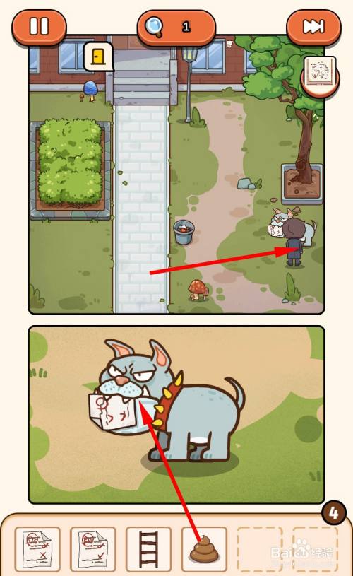 移动到咬着试卷的狗狗旁边,将便便对着狗狗利用。