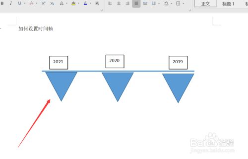 然后点击东西栏的【插入】,然后点击【外形】旁的倒三角形,鄙人拉菜单中选择一个三角形外形,插入到【直线】外形下面(如图所示)