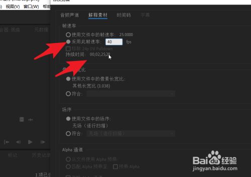 在箭头所指位置输入新的帧数率,如下图中的40。视频时长变短。