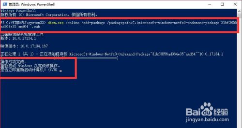 在号令窗口键入输入:dism.exe/online/add-package/packagepath:+文件路径。然后返回打开或封闭woindows功能,打开net4.7高级办事项目。然后键入Y重启号令。