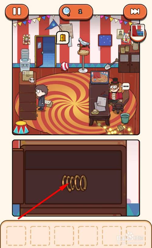 小丑箱子打开后,点击拿走里面的弹簧。