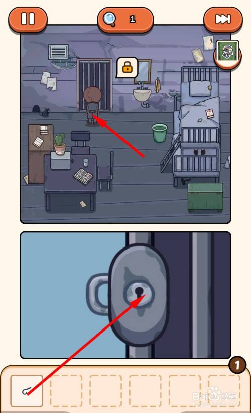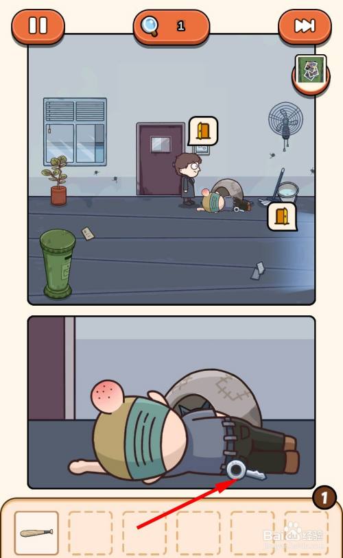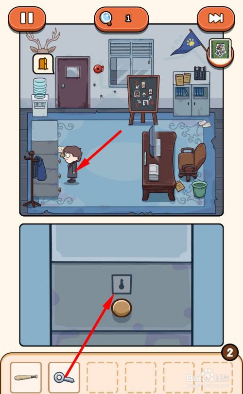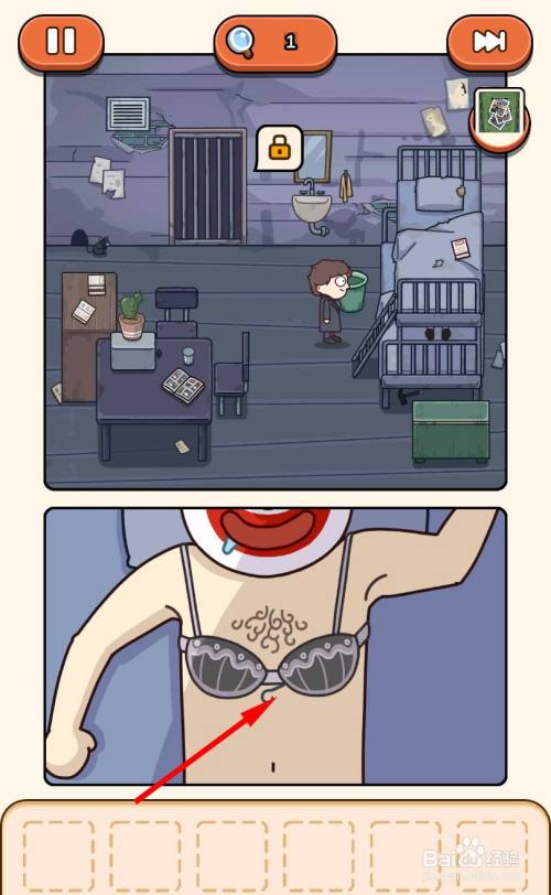 移动到床边,解开小丑的衣服,拿走藏在衣服里的钥匙。