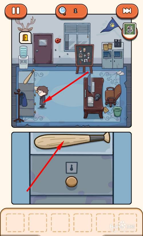 移动到柜子旁边,拿走柜子上的棒球棍。