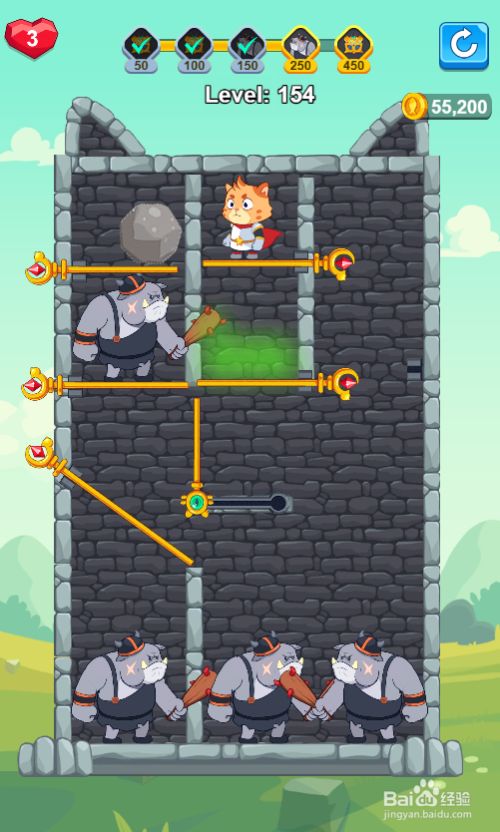 工具/原料三星Galaxy Tab S7安卓Android 11Super Kitty Rescue1.0方式/步骤1首先打开右上侧比特犬下面的插销,如图。 2接着打开绿色气体下面的插销,如图。 3然后把推拉杆推到右端,如图。 4接着打开下侧的斜插销,如图。 5然后打开比特犬下面的插销,如图。 6最后打开巨石下面的插销,如图,这样就通关了。 END