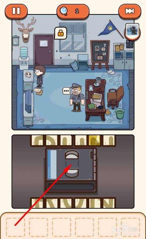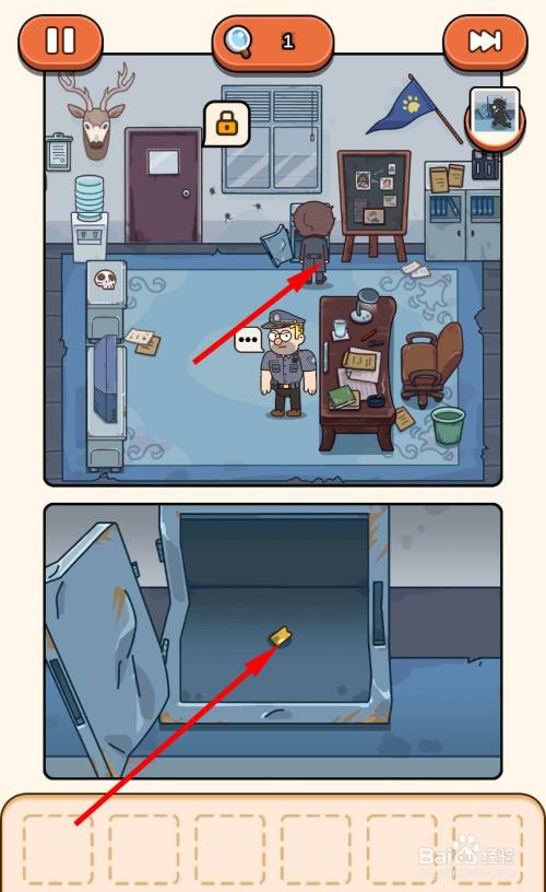 走到窗户底下的保险柜旁边,打开保险柜,点击拾取里面的金牙。