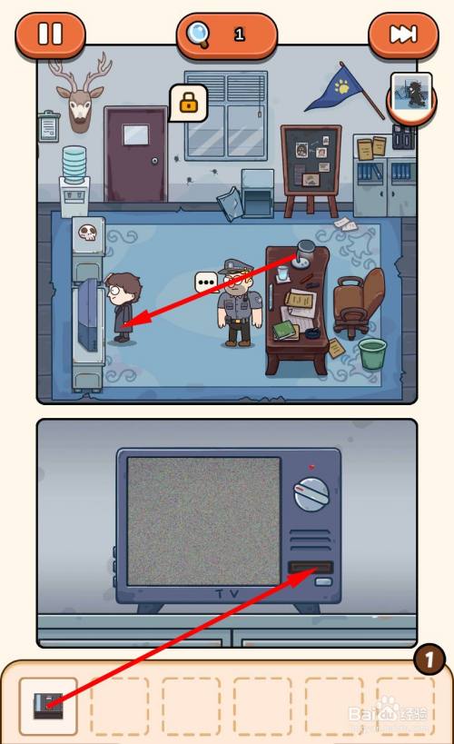 走到机械小猴的旁边,点击将小猴的头转标的目的窗户,小猴会标的目的窗外发射飞镖。