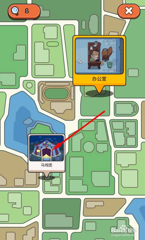 电视调好后,打开地图,选择移动到马戏团。