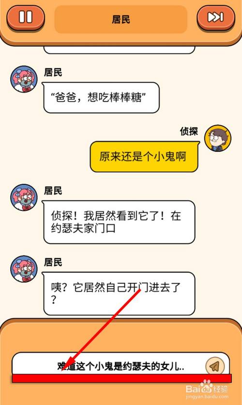 居民说看到它在约瑟夫家门口,选择【莫非这个小鬼是约瑟夫的女儿】即可过关。