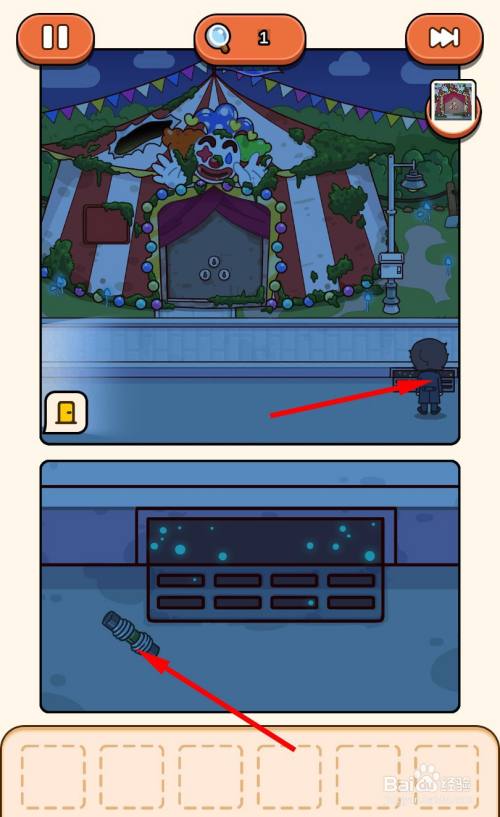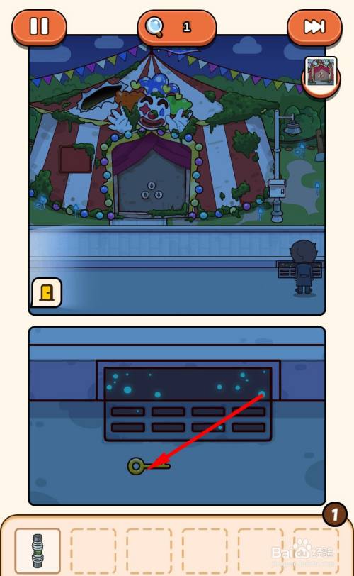 点击小丑后,小丑会扔出一把钥匙,点击拾取获得钥匙。