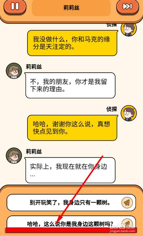 莉莉丝说就在大侦察身边,大侦察说【哈哈,这么说您是我身边这棵树吗?】。