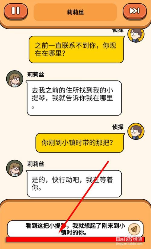 莉莉丝说去找她的小提起就告诉大侦察,大侦察问【您刚到小镇时带的那把?】。