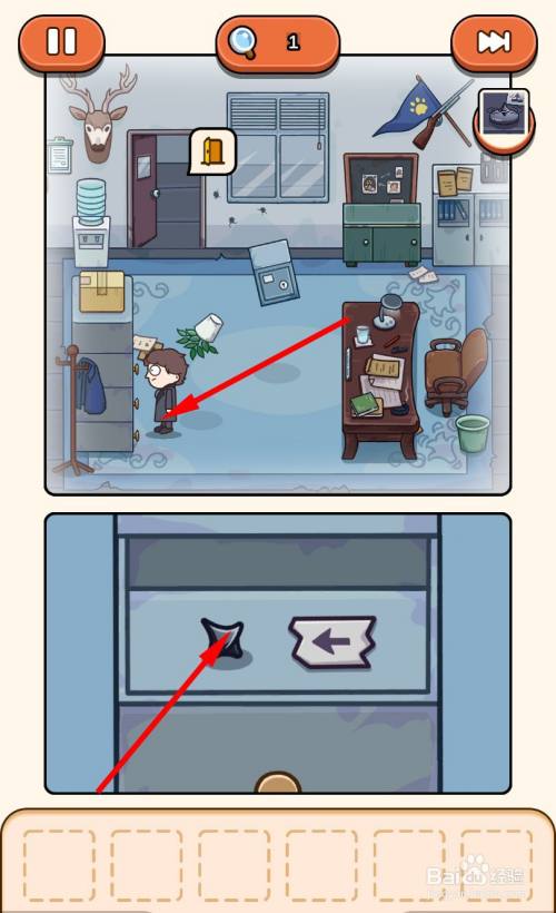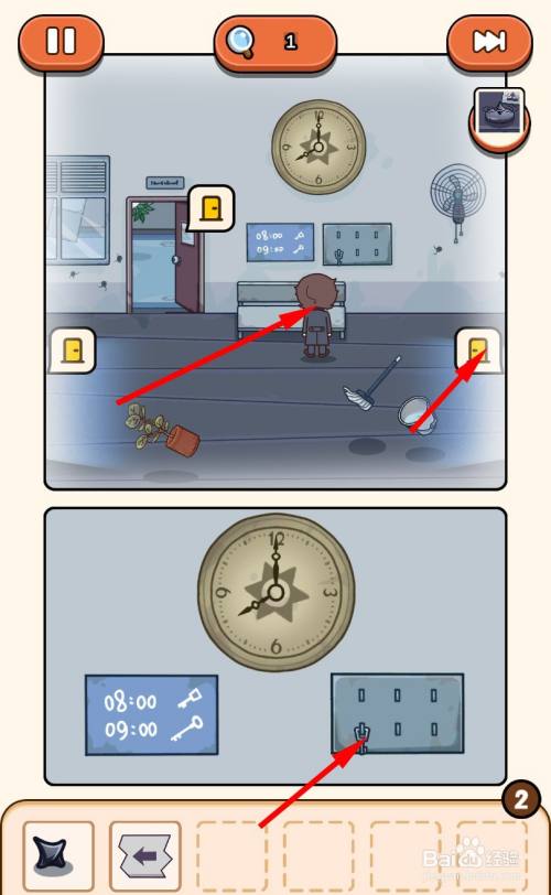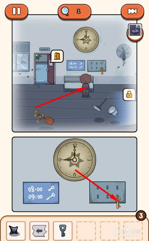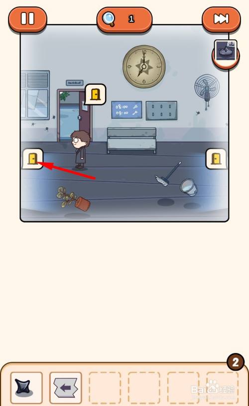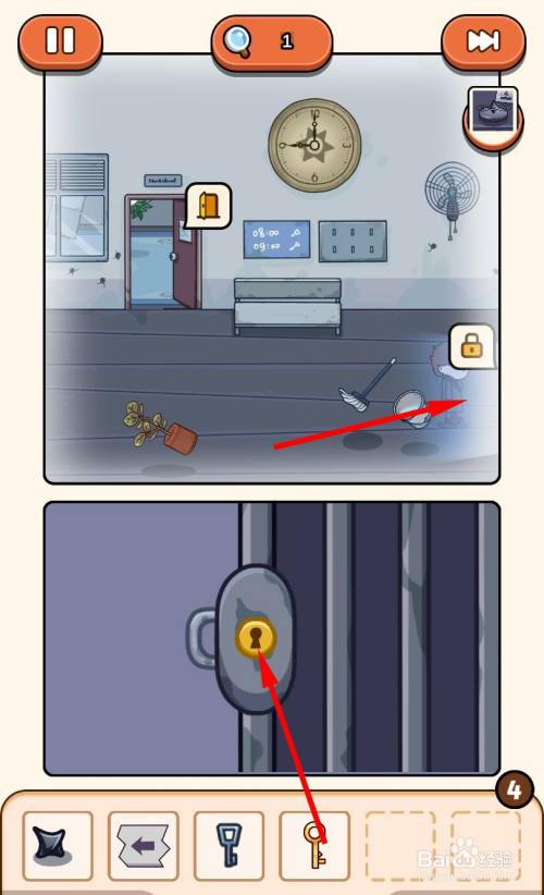 走到长椅旁边,点击获得挂在墙上的银色钥匙,然后标的目的右边房间移动。