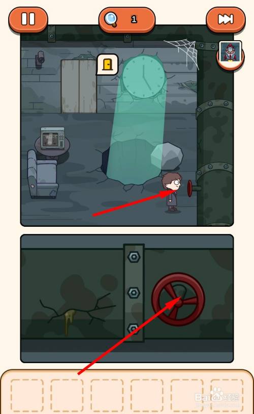 走到管道阀门旁边,点击打开阀门,让污水顺着大洞流下去。