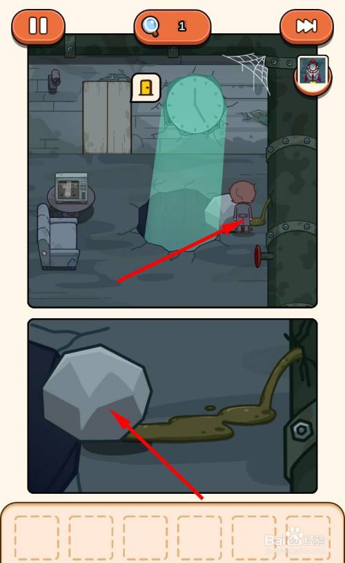 移动到石头旁边,将石头推下大洞。