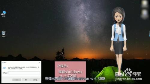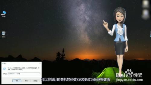 在弹出的窗口中找到shutdown -s -t 7200,可将倒计时关机的秒数7200更改为肆意整数值。