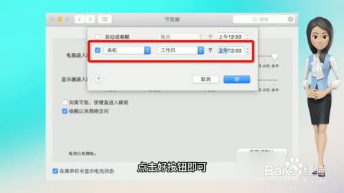 点击dock栏上的系统偏好设置。进入节能,进入下方的按时。