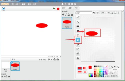 点击用颜色填充,在椭圆内部点击鼠标左键,给它填充上红色;