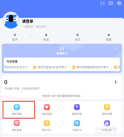 打开如下图界面,选择界面中心的我的词库选项,点击打开