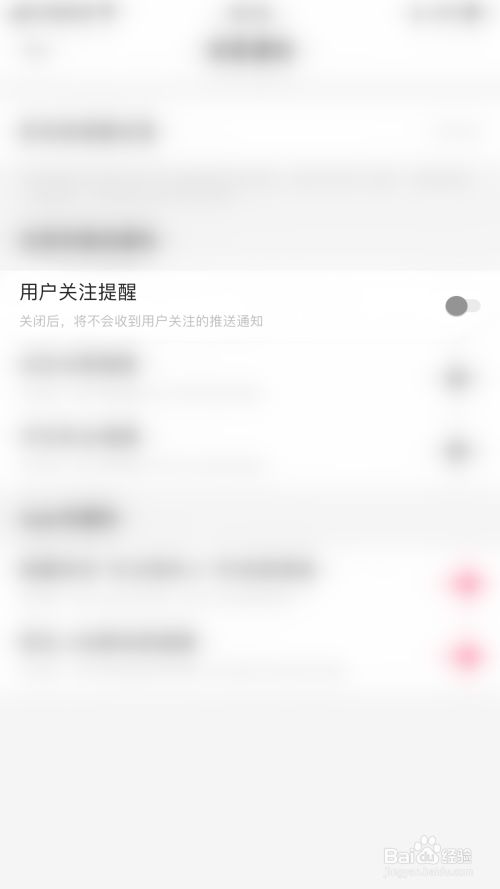动静通知设置界面点击”用户存眷提醒“后面的圆点