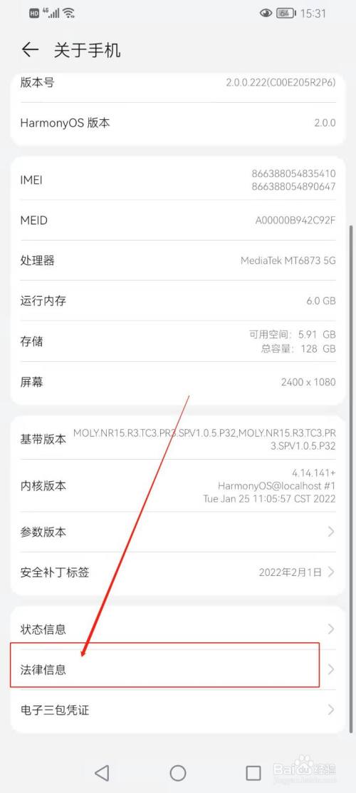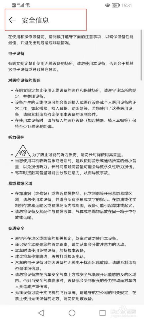 【设置】 -【关于手机】-【法令信息】-【平安信息】