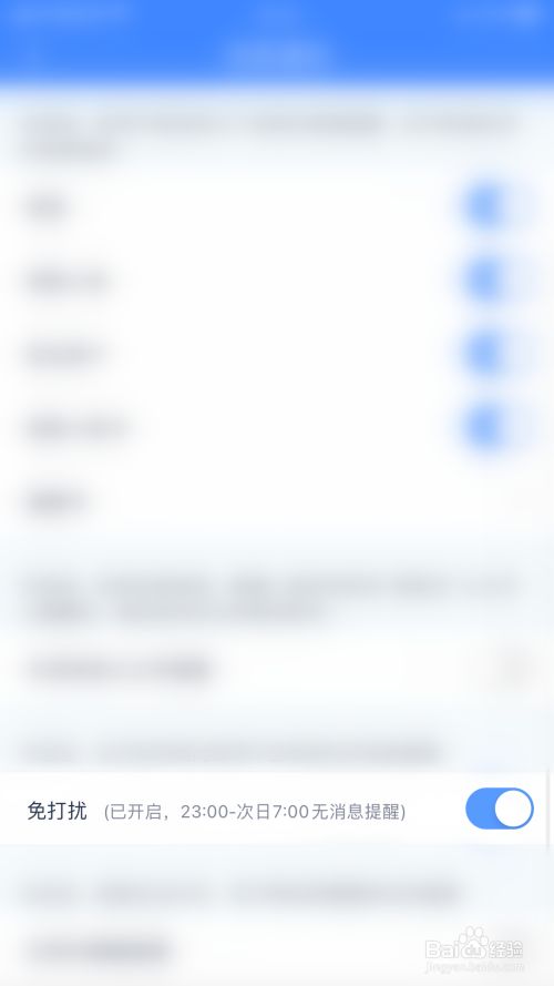 动静通知设置界面点击“免打搅”后面的圆点