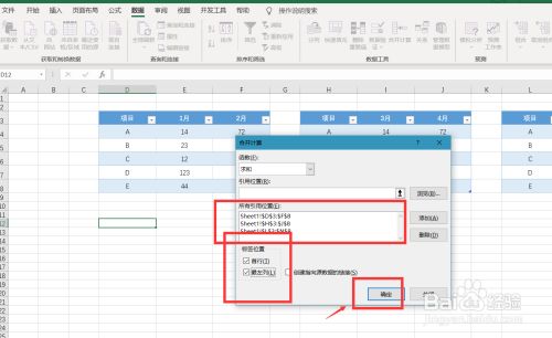 最后,我们勾选标签位置在首行和最左列,如下图所示,点击确定。可以看到三张表格已经被归并到一张表格上。