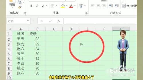 表格中大于等于≥符号就输入了。
