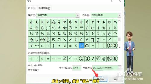 找到大于等于符号,点击插入即可。