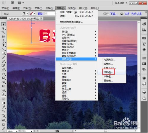 我们就给文字添加上了玻璃扭曲和投影结果。