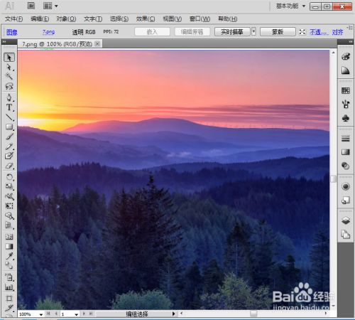 将一张日出图片导入到AI中;