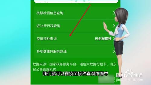 在健康码页面中,打开疫苗接种查询选项。我们就可以在疫苗接种查询页面中,查看接种疫苗的记实。