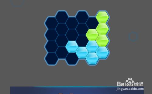 接着把蓝色六边形拼块放在拼图的下侧右端,如图。
